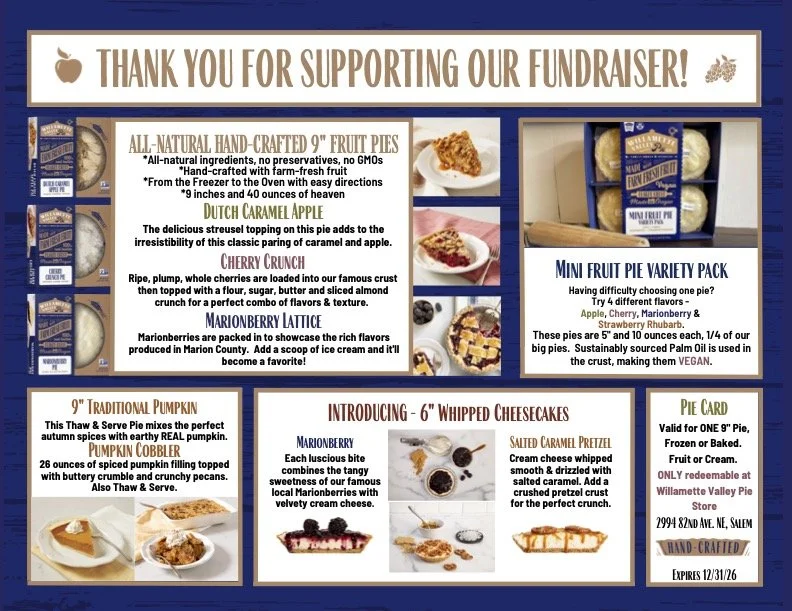 This is your chance to support music education by eating delicious, locally prepared pie or Cheesecake packed full of orchard-fresh fruit. How often does an opportunity like that come along?